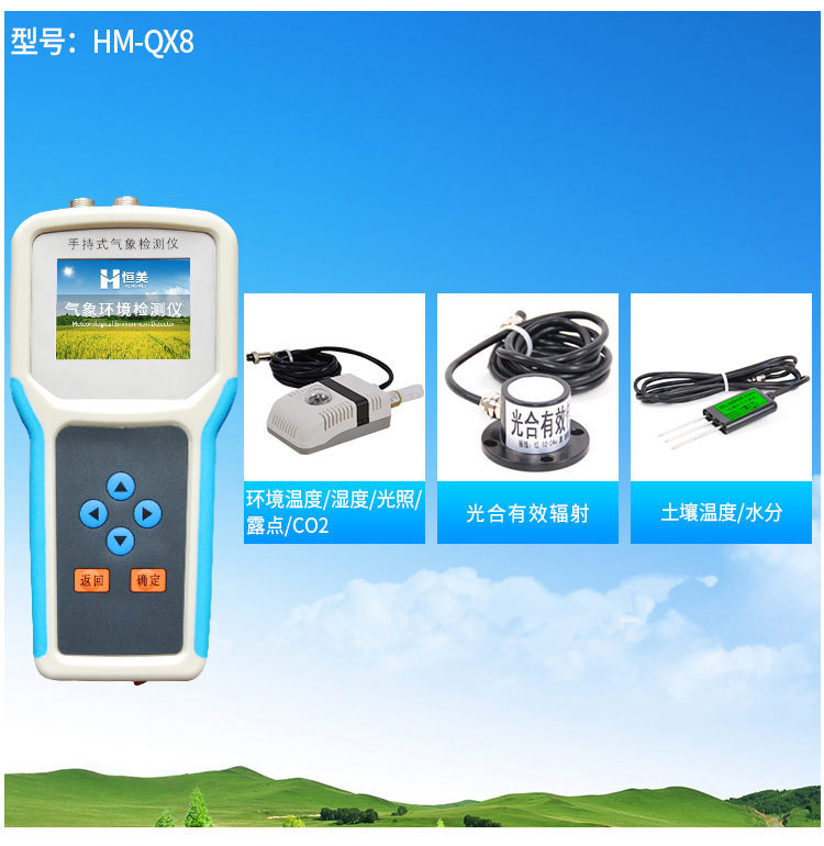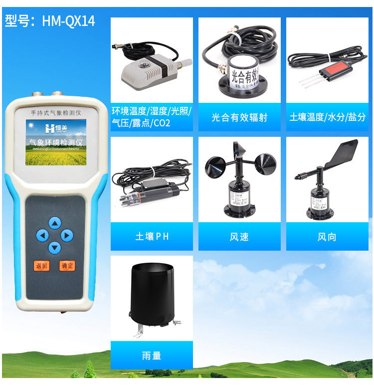 手持式智能農業氣象環境檢測儀是我們專門針對農田、草場局部小尺度環境設計的,對與植被和農作物生長密切相關的土壤、水氣等環境參數監測的農田小氣候站。它主要觀測與農業相關的空氣溫度、空氣濕度、光照強度、二氧化碳濃度、露點溫度、光合有效輻射、土壤溫度、土壤水分、土壤鹽分、土壤PH、風速、風向、降雨量、大氣壓力、總輻射、葉面溫度等16個環境參數氣象要素,為農業科研、農業生產等提供良好的支持。