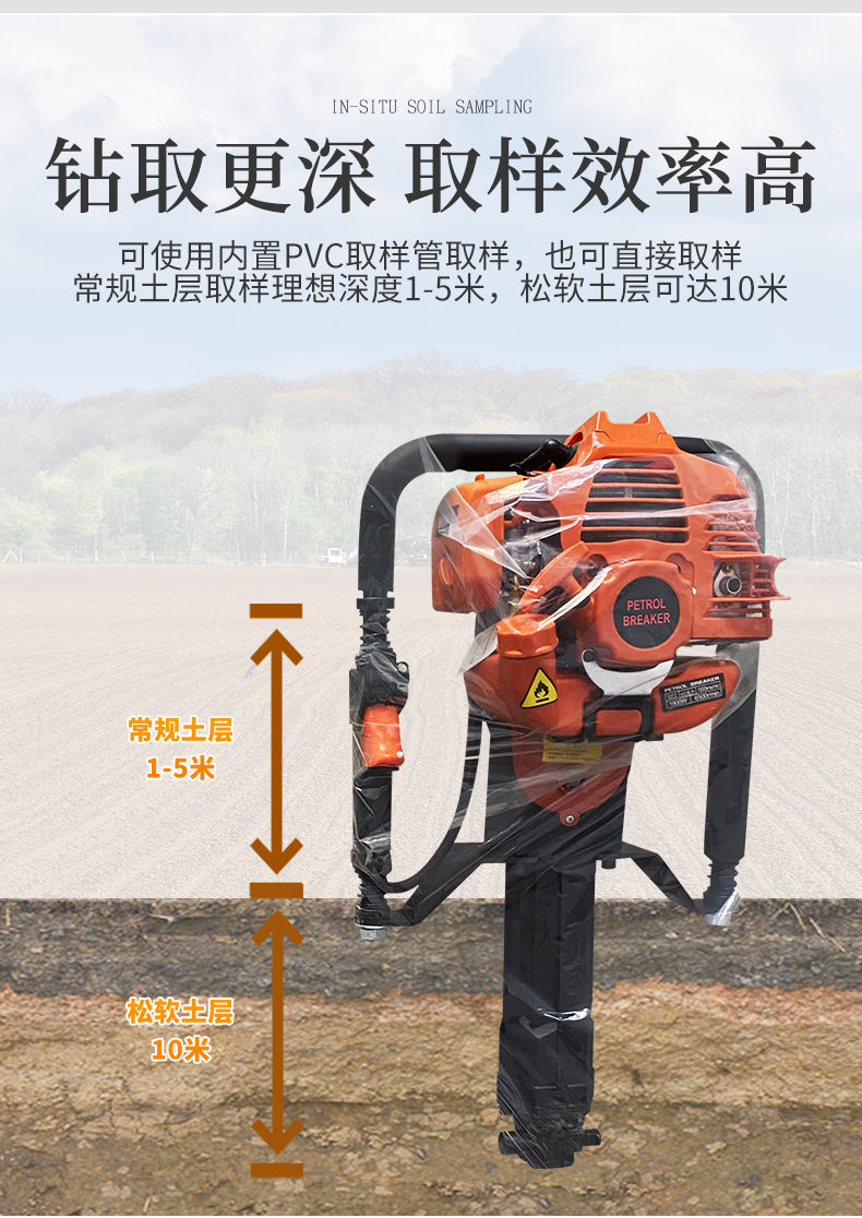 與傳統的手鉆比較,HM-QY800土壤取樣鉆機鉆取的深度更深、取樣的效率更高,并且取得的是原狀、基本無擾動和壓縮(視地形而定)的土壤樣品。在取樣深度超過半米、對土壤樣品的質量(原狀、無擾動、無壓縮)要求較高的項目中,采用該設備是不錯的選擇。