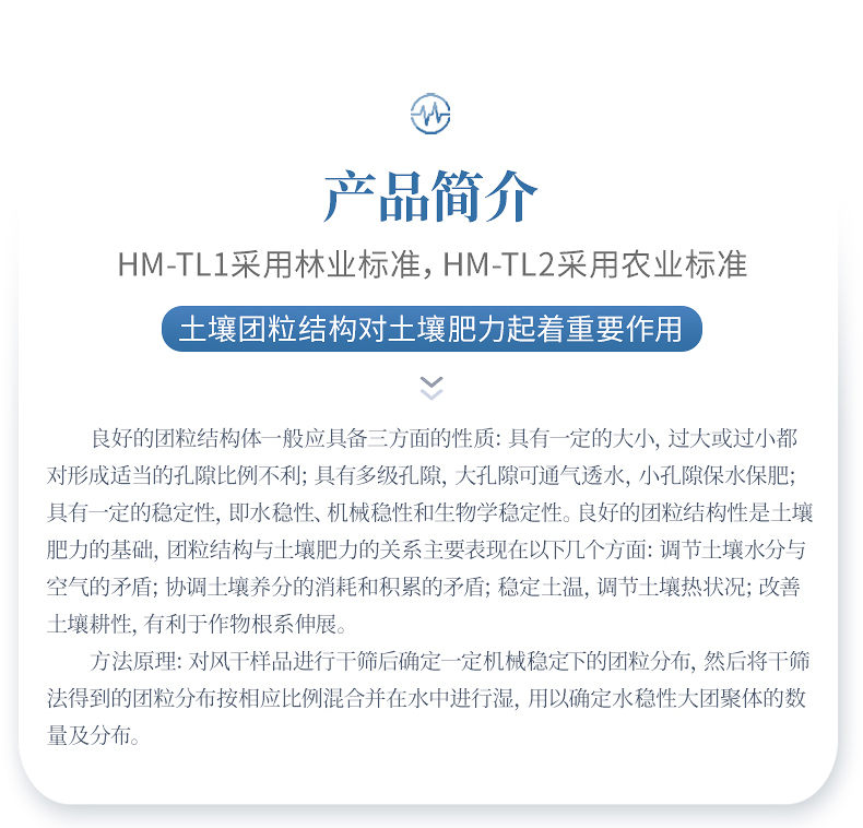 1、土壤團(tuán)粒結(jié)構(gòu)對土壤肥力起著重要作用。良好的團(tuán)粒結(jié)構(gòu)體一般應(yīng)具備三方面的性質(zhì):具有一定的大小,過大或過小都對形成適當(dāng)?shù)目紫侗壤焕?具有多級(jí)孔隙,大孔隙可通氣透水,小孔隙保水保肥;具有一定的穩(wěn)定性,即水穩(wěn)性、機(jī)械穩(wěn)性和生物學(xué)穩(wěn)定性。良好的團(tuán)粒結(jié)構(gòu)性是土壤肥力的基礎(chǔ),團(tuán)粒結(jié)構(gòu)與土壤肥力的關(guān)系主要表現(xiàn)在以下幾個(gè)方面:調(diào)節(jié)土壤水分與空氣的矛盾;協(xié)調(diào)土壤養(yǎng)分的消耗和積累的矛盾;穩(wěn)定土溫,調(diào)節(jié)土壤熱狀況;改善土壤耕性,有利于作物根系伸展。土壤團(tuán)粒分析儀適用于土壤、環(huán)境、地質(zhì)等試驗(yàn)室對團(tuán)聚體的分析。